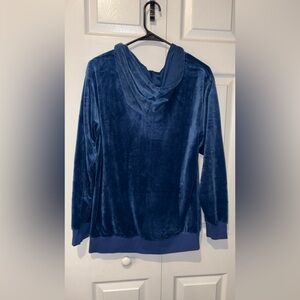 Luxurious blue velour oversized jacket and matching velour leggings . Features drawstring and soft texture.