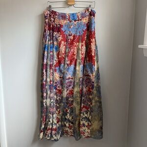 Anthropologie Hemant & Nandita Red Gold Blue Floral Louvre Maxi Skirt SZ L