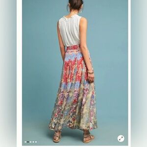 Anthropologie Hemant & Nandita Red Gold Blue Floral Louvre Maxi Skirt