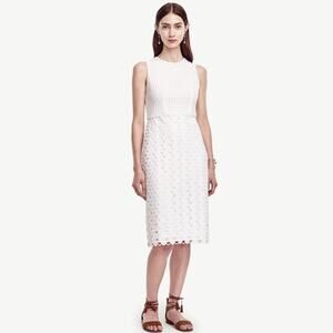 Ann Taylor Geo Eyelet Sheath Dress Crisp White Petite