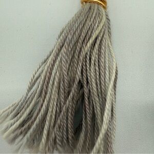 In good condition, some fraying of the grey yarn along the bottoms but minimal and darkening of the brass. Please see photo it’s for close ups