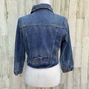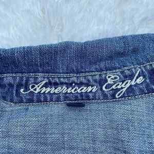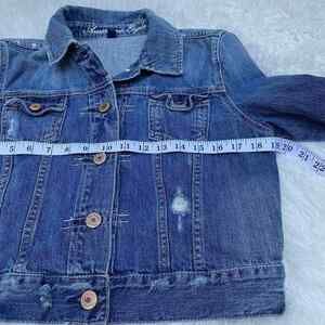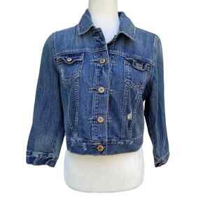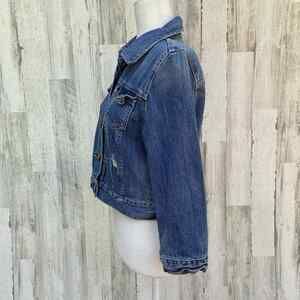 American Eagle Denim Trucker Jacket Womens Large Blue Jean Distressed