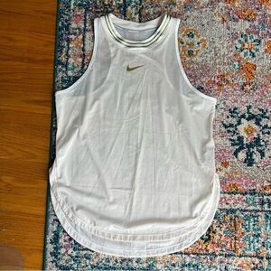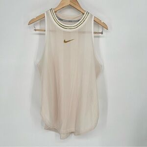 Metallic accents and a signature Nike Swoosh shine on a breezy racerback tank with striped mesh insets. Style Name: Nike Glam Racerback Tank. Style Number: 5848333. Size large. Bundle for a discount on 3 or more items from my closet! Offers are always welcomed and appreciated!