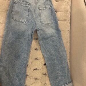 The Free People We The Free Palmer Mid Rise Cuffed Jeans in La La Land are a stylish pair of wide-leg jeans designed for women in size 26. With a cool blue color and cuffed detailing, these jeans offer a trendy and comfortable fit. The Free People brand is known for its quality and unique designs, making these jeans a fashionable addition to any wardrobe. Perfect for those looking for a chic and relaxed denim option. These are currently SOLD OUT online at Free People. Waist band attached tag is in place but I pulled off the tag with price. They run slightly large. I normally wear a 26 and should’ve gotten a 25. These have never been worn.