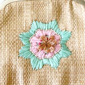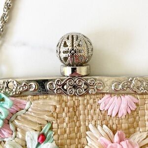 LA REGALE vintage woven purse brown pink green silver chain