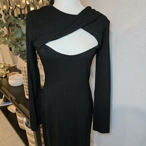 This sophisticated dress by Halston Heritage features a sleek long sleeve design, perfect for elegant occasions. Its timeless black hue and refined silhouette make it a versatile addition to any wardrobe.