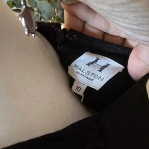 Halston Heritage Shirred Keyhole Black Mini Dress cocktail elegance Size 10