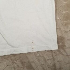 Used decent shape. Has some spots/stains on the top shoulder sleeve area, see pics. Single stitch USA made. Great front print. Tagged large see pics for measurements. Fast shipping