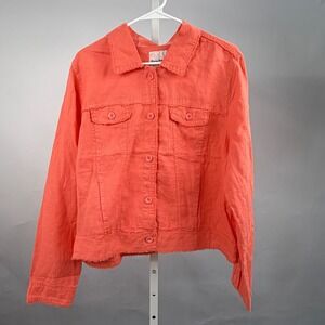 Keywords: Tommy Bahama, Linen Jacket, Coral Orange, Button Up, Raw Hem, Distressed, Lightweight, Coastal, Vacation, Beachwear, Casual, Boho