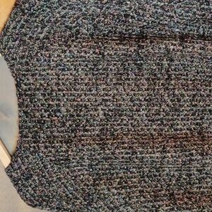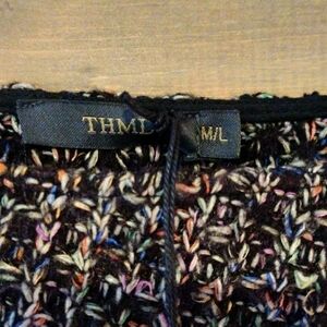 Beautiful muted multicolor sweater poncho from THML. Size is M/L and it is NWT. Base is black with strands of cream, rust, green, blue, and orange running through. Arm holes are in the front.