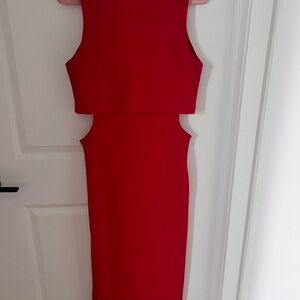 Topshop Red Sheath Midi Dress with Cutouts