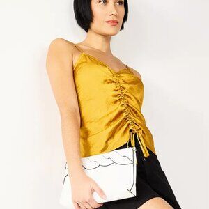 🦋Women's Nine West Mustard yellow Ruched Drawstring Front Tank🦋