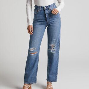 Levi’s Premium High Rise Distressed Ribcage Straight Ankle Jeans