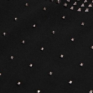 Signature Rock-Chic Detailing: Thousands of tiny silver-tone micro studs are elegantly arranged across the entire body and sleeves, with a more dense, impactful arrangement around the round neckline.