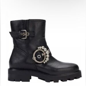 Karl Lagerfeld Black Moto Boots with Rhinestone Detail
