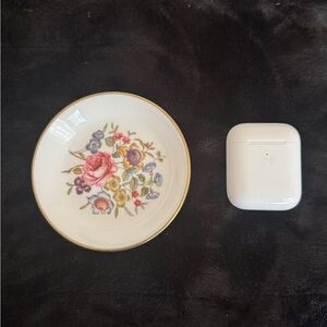 • Small dish (similar diameter to an AirPods case for scale — about 4” across)
