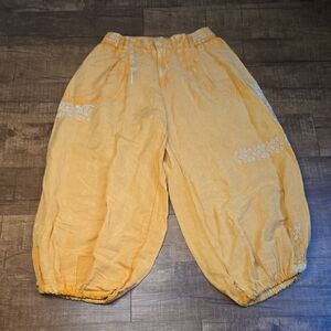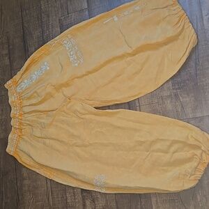 By Anthropologie Embroidered Parachute Pants Small Linen Blend Mango Mojito