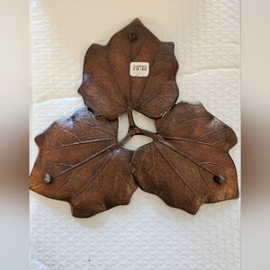 Enhance your home with this brown maple leaf candle plate by Crate n Barrel. Its natural design adds the warm feel of autumn to your home.