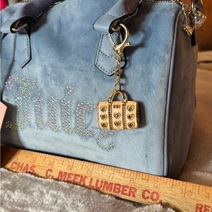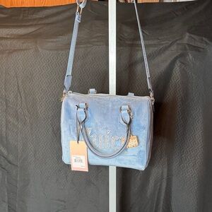 Juicy Couture Light Blue Velvet Satchel Bag with a gold purse charm.. NWT)