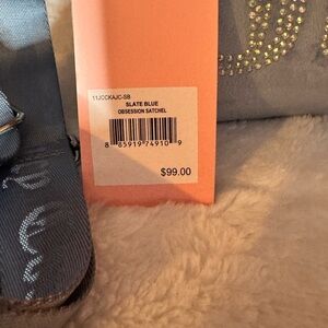 Step out in style with this Juicy Couture light blue velvet satchel, featuring sparkling rhinestone logo lettering, chic gold-tone accents, and a detachable Juicy charm. This bag offers plenty of room for essentials while keeping your look trendy and feminine. • Condition: New with Tags • Material: Velvet with faux leather trim • Color: Slate Blue • Accents: Silver-tone hardware, rhinestone Juicy logo, detachable gold purse charm • Closure: Zipper top • Size: OS (approx. 12” W × 8” H × 6” D – measured in photos) Perfect for adding a bold statement to casual outfits or elevating an evening look