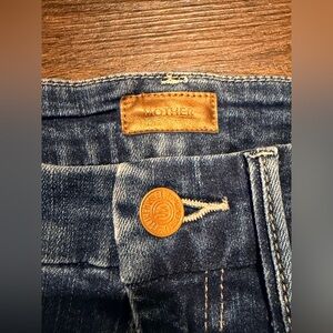 The MOTHER Women's Jeans High Waisted Looker in size 25 . High-waisted fit and a sleek ankle length. With a classic solid blue color and accents like buttons and zippers, these jeans are perfect for all seasons and can be easily machine washed for convenience. The 5-pocket design and stretch fabric add both functionality and comfort, making them a practical choice for everyday wear.