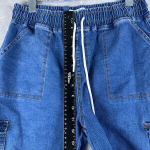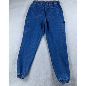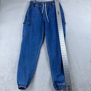 Wax Jean Denim Jogger Pants Womens Size Large Drawstring Waist High Rise Blue