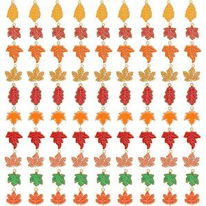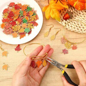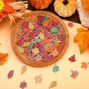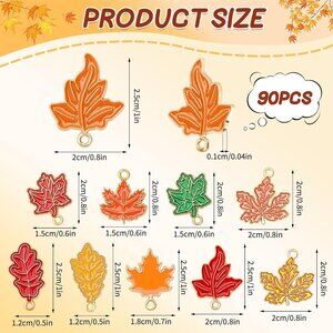 90 Pcs Fall Charms for Jewelry Making, Thanksgiving Fall Leaf Enamel Charm Autum