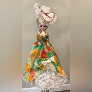 Rare 60/70’s Era Vintage 18” Beautiful Big Eye Bradley Doll with Floral Dress and Lace Hat. Has rare long pearl necklace unlike others that have small chokers/necklaces. Made in Korea. In really good shape legs have a couple little stains on them. In smoke, free, pet free location. Perfect for collectors.