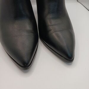 Paige Black Kenna Ankle Heel Booties Sz 7 Womens Leather Point Toe. It's black leather, pointed toe, ankle boot. It has a zipper closure on the back. It has light signs of wear to the heels and toes. Otherwise, it's in good pre-owned condition. Size 7