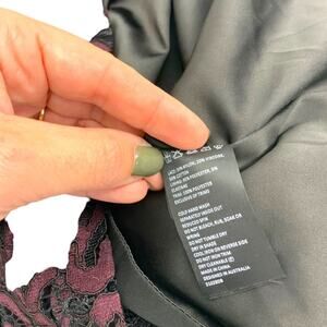 Bardot Taegen Lace Midi Dress Wine Black Size 10; From Nordstrom; The Taegen Midi Dress features thin rouleau shoulder straps, v-neckline, princess seams through the bust, fitted silhouette, midi length skirt with short lining and invisible zip closure to the centre back seam. $139 MSRP Fabrication: 50% Cotton, 30% Nylon, 20% Viscose Lining: 95% Polyester, 5% Elastane Approximate Measurements Pit to Pit: 19" Waist: 16" Length: 42" Condition: New without tags, NWOT; tagged with Nordstrom Last Chance tag Please note that any professional/stock images are for style reference only. Please refer to photos of the actual garment, which will be shipped to buyer. 14Z QL8 101823