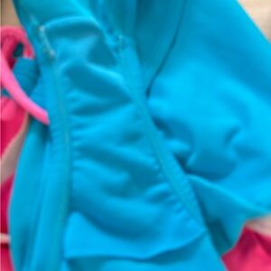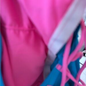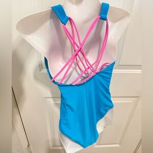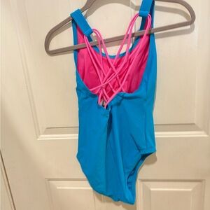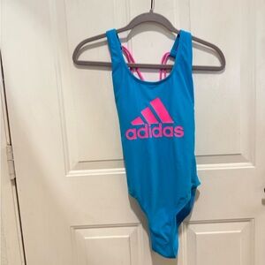 Adidas one piece logo cross back blue & pink swimsuit medium