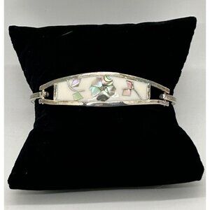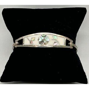 Vintage Taxco MX Silver-Tone & Abalone Inlay Cuff Bracelet Size 6.5