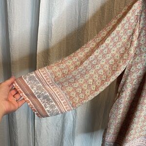 Rose Olive Top Women 2X Plus Orange Blouse 3/4 Sleeve Bohemian Floral Long Line