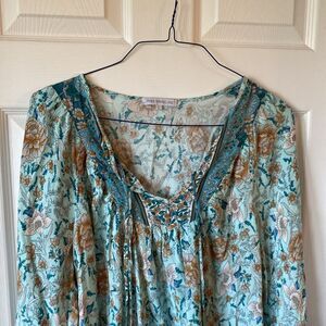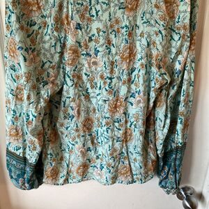 Miss Sparkling Blouse Women’s Size Large Hippie Boho Peasant Floral V Neck Light