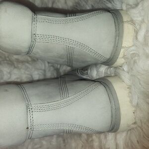 Timberland 6" Womens Gray Boots, few scuffs in front and stains on 1 tongue. Worn once so both soles have hardly no wear!