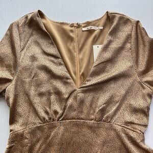 Francesca’s Collection Bronze & Black Dotted Satin Mini Baby Doll Dress Size Medium New with tags Retail price $48 Length 33”, chest 18”, waist 30” approximately