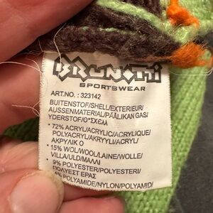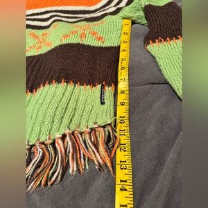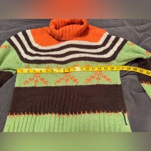 Bold orange and green design. Features a cozy cowl neck. Perfect for a stylish look. This is from my personal closet and purchased at the ski shop where I worked.