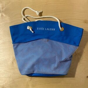 Stylish blue mesh tote bag by Estée Lauder. Perfect for casual outings.