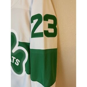 The product is a Men's 56 Toronto Maple Leafs St. Pats Matthew Knies #23 Adidas Primegreen Jersey. This officially licensed hockey jersey features the player's name and number, making it a perfect fan apparel for supporters of the Toronto Maple Leafs. With its white color and high-quality Adidas brand, it combines comfort and style for fans of the National Hockey League.