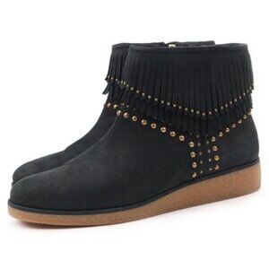 NEW UGG Ariane Black Fringe Studded Leather Boots