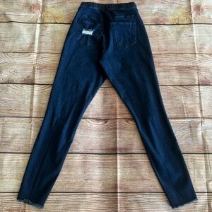 • Distressed look, raw bottom hem
