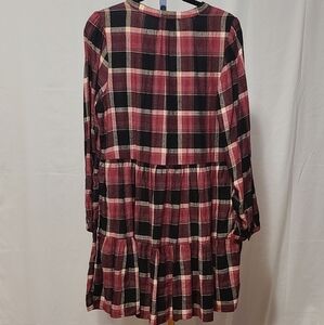 Stylish plaid dress with long sleeves. Button-down front. Perfect for casual outings.