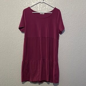 Stylish pink short sleeve dress with a tiered design. Perfect for casual outings.