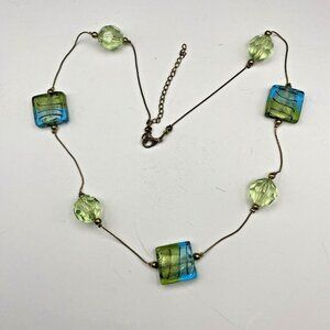 Square Art Glass Acrylic Bead Necklace 24-27"