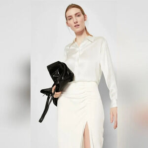 IRO Paris Hagat Shirred White Maxi Skirt with Slit Size 38 6