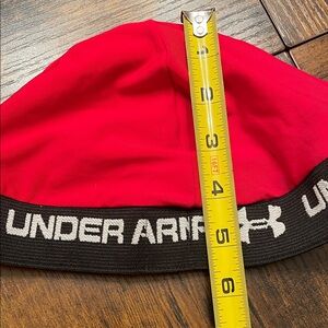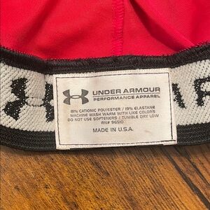 Vibrant red cap featuring a black band with Under Armour branding. Pre loved.
