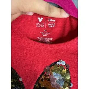 Jumping Beans Girls Minnie Mouse Flip Sequin Gold Silver LS Red Shirt 6X