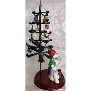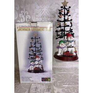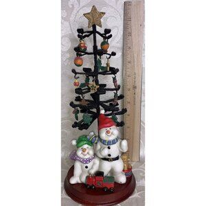 Snowmen w/ Metal Tree w/ Wood Base & Ornaments Christmas Holiday Living 11 Inch
