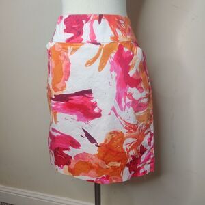 Calvin Klein Floral Skirt w/ Pockets Pink Orange White Cotton