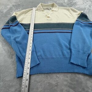 Vintage Greg Richard Polo Sweater Mens Sz L Collar Stripe 90s Preppy Multicolor